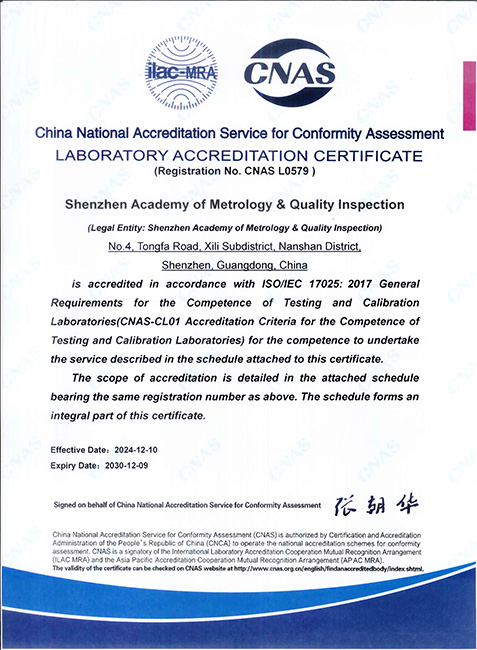 中国合格评定国家认可委员会实验室认可证书【CNAS L0579】英文